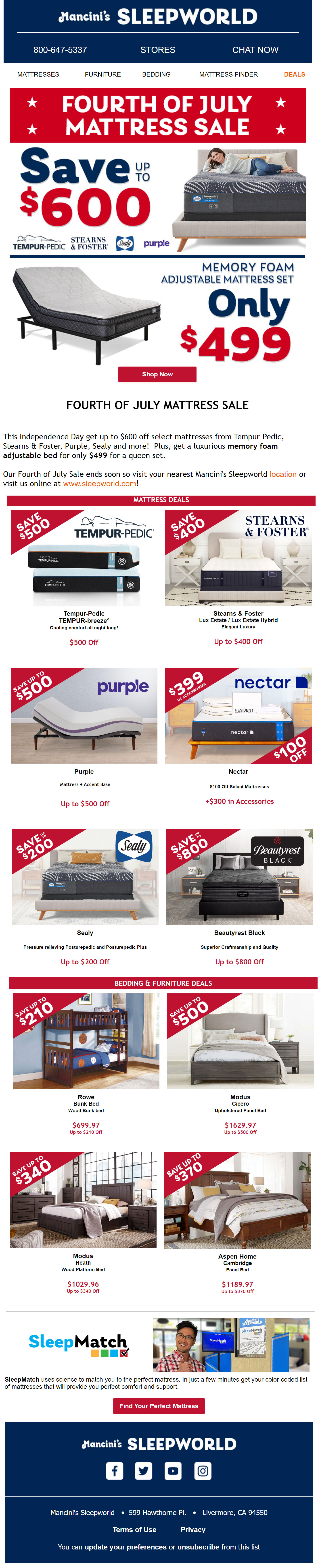 Email Campaigns - Mancini's Sleepworld