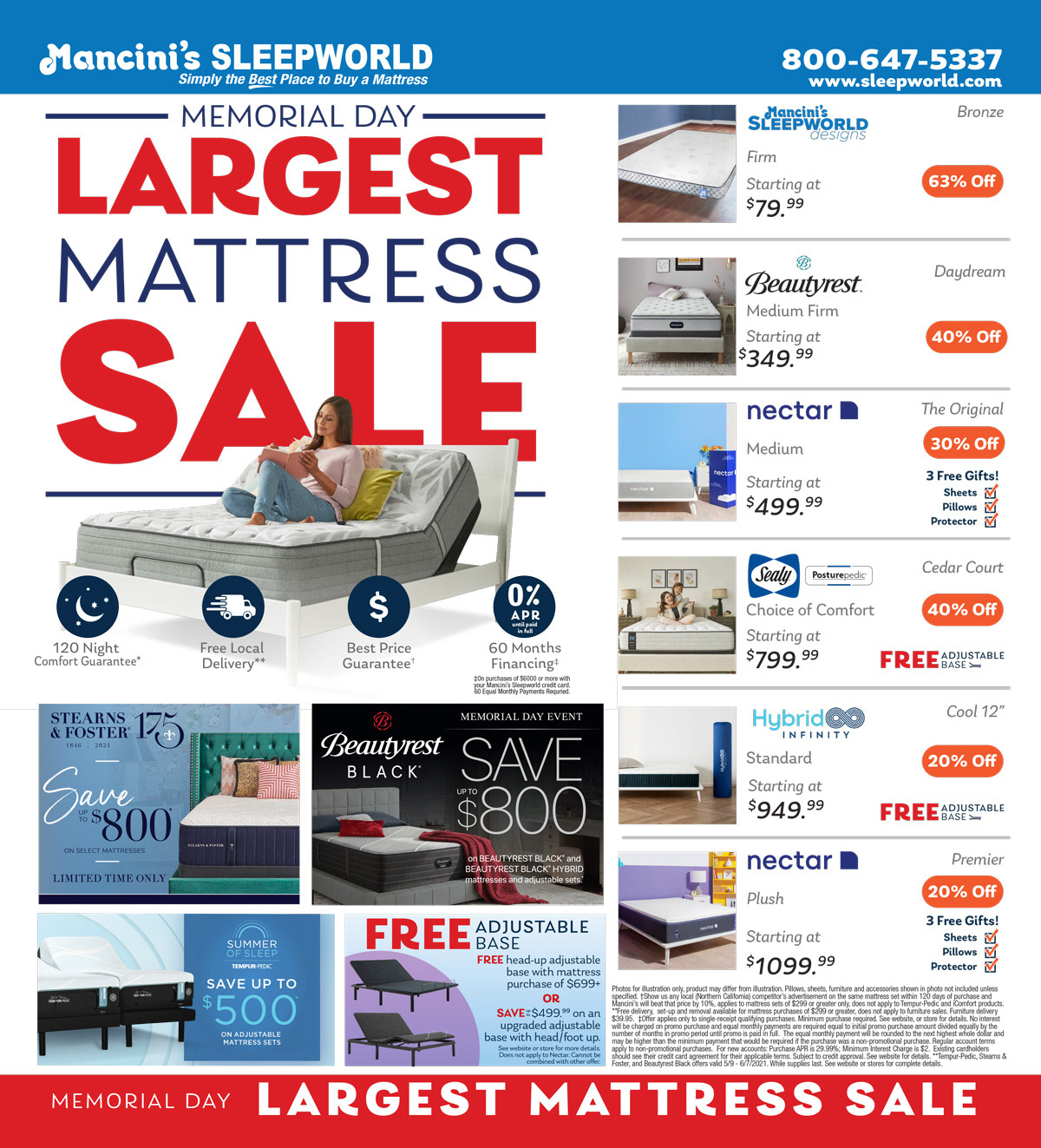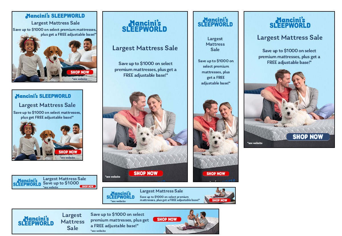 The Largest Mattress Sale is a promotion created by Mancini's Sleepworld to highlight Memorial Day and Labor Day each year. This year we're using on new design language to coincide with a new look and feel on our website.