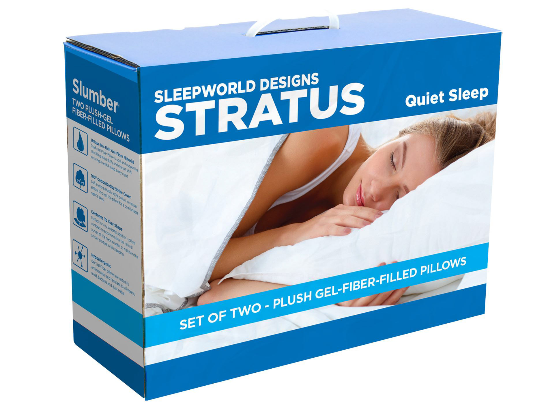 Package design for the Sleepworld Designs Stratus line of pillows.
